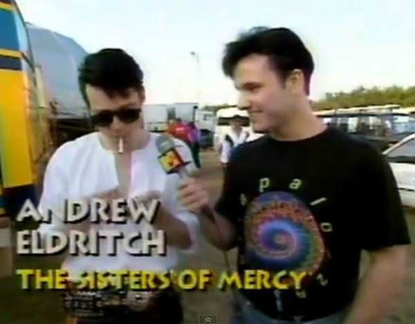 For this week’s “120 Minutes” Rewind, we present a series of clips of what host Dave Kendall announces as “the first-ever international edition of ‘120 Minutes,'” broadcast in August 1991 from England’s Reading Festival. As you can see from the footage below, Kendall chats up The Sisters of Mercy’s Andrew Eldritch and members of Sonic Youth, Nitzer Ebb and James.
