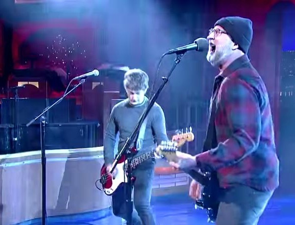 Bob Mould and his eponymous band stopped by “The Late Show with David Letterman” on Friday night to promote their current album, Beauty & Ruin, performing a pair of songs — “Tomorrow Morning” and “Kid with a Crooked Face” — back to back. As Consequence of Sound notes, the performance was so loud that, afterward, bassist Jason Narducy tweeted, “People in the studio audience confirmed that dust fell from the rafters as we played!”