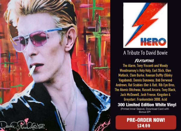 Main Man Records this spring will release Hero: A Tribute to David Bowie, an ultra-limited white-vinyl LP — the label says just 300 copies are being pressed — that features The Alarm and members of Blondie, Sex Pistols, The Damned, Heaven 17 and more honoring the Thin White Duke.